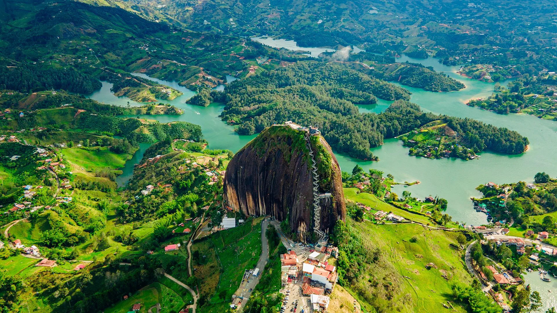 Śniadanie. Przejazd w kierunku GUATAPE. Przystanek na Piedra del Peñol – gigantycznym monolicie o wysokości 200 m, na szczyt którego prowadzi ponad 700 stopni. Ze szczytu można podziwiać wspaniałą panoramę na sztuczny zbiornik wodny z tysiącem malutkich wysepek oraz tamę Pan. Rejs po jeziorze. Następnie przejazd do Guatape uznawanego za jedno z najbardziej fotogenicznych i barwnych miast Kolumbii. Miasteczko leży nad sztucznym zbiornikiem wodnym utworzonym w wyniku budowy elektrowni wodnej. Spacer uliczkami, gdzie różnokolorowe budynki, zdobione płaskorzeźbami przedstawiającymi ludzi i zwierzęta, stanowią idealne tło do zdjęć. Dla chętnych (za dodatkową opłatą na miejscu): przejażdżka kolorowym tuk tukiem, który jest tu popularnym środkiem transportu. Wizyta w centrum miejscowości, gdzie znajduje się kościół Nuestra Seńora del Carmen oraz kolorowy Plac de los Zocalos. Powrót do hotelu, kolacja i nocleg.